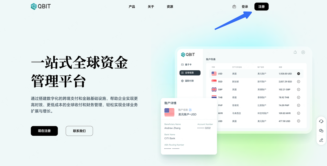 1.进入Qbit官方网站,点击【注册】