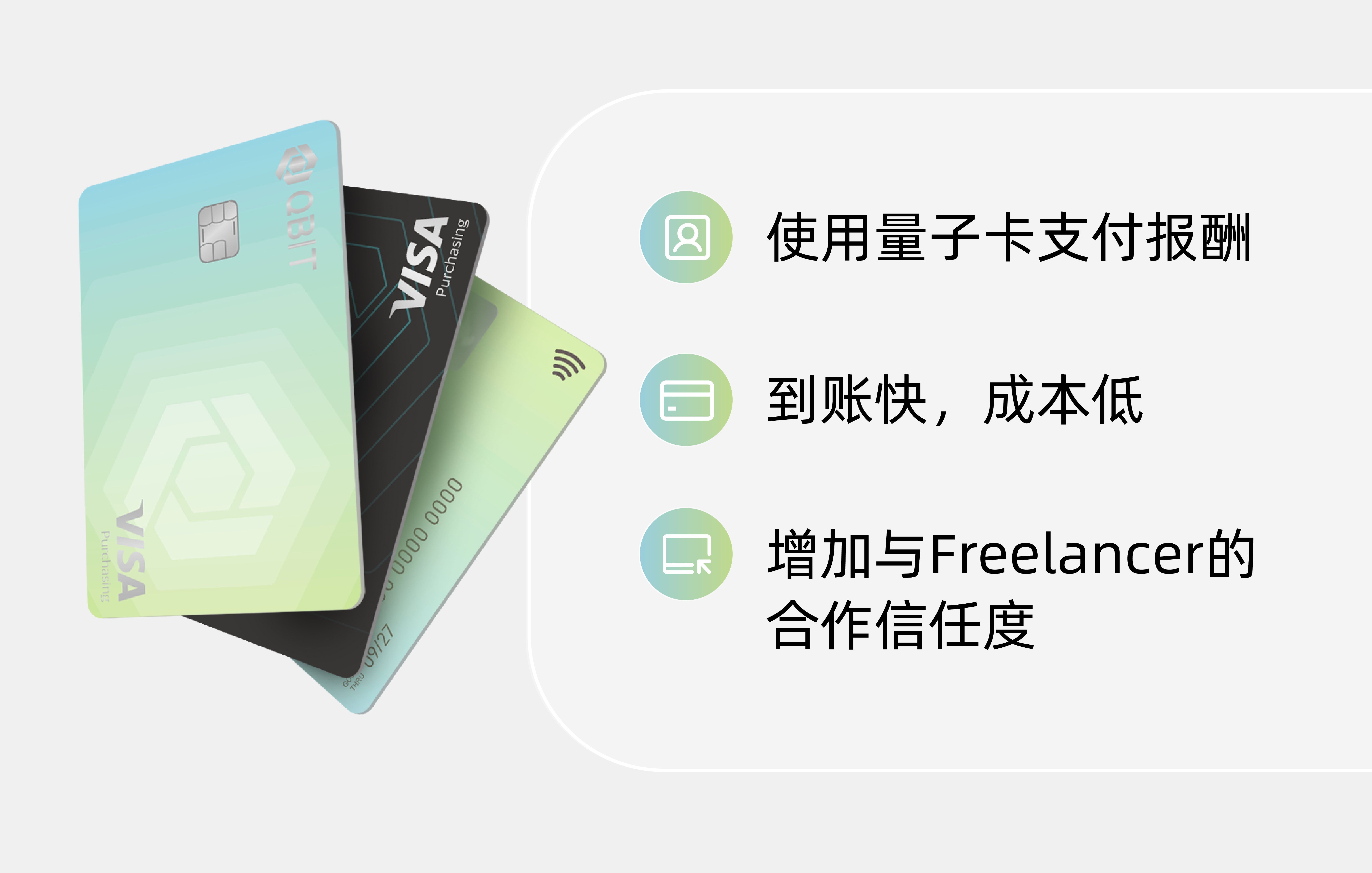 如果报酬支付方式长期得不到改善,Freelancer的流失只是时间问题,对Freelancer而言,报酬支付速度与体验是选择合作方的重要考量因素。对于以全球远程团队成员和Freelancer为主要用工模式的企业而言,一种更轻量、更直接的报酬支付方式值得考虑,那就是通过Qbit量子卡向全球合作人员发放报酬。