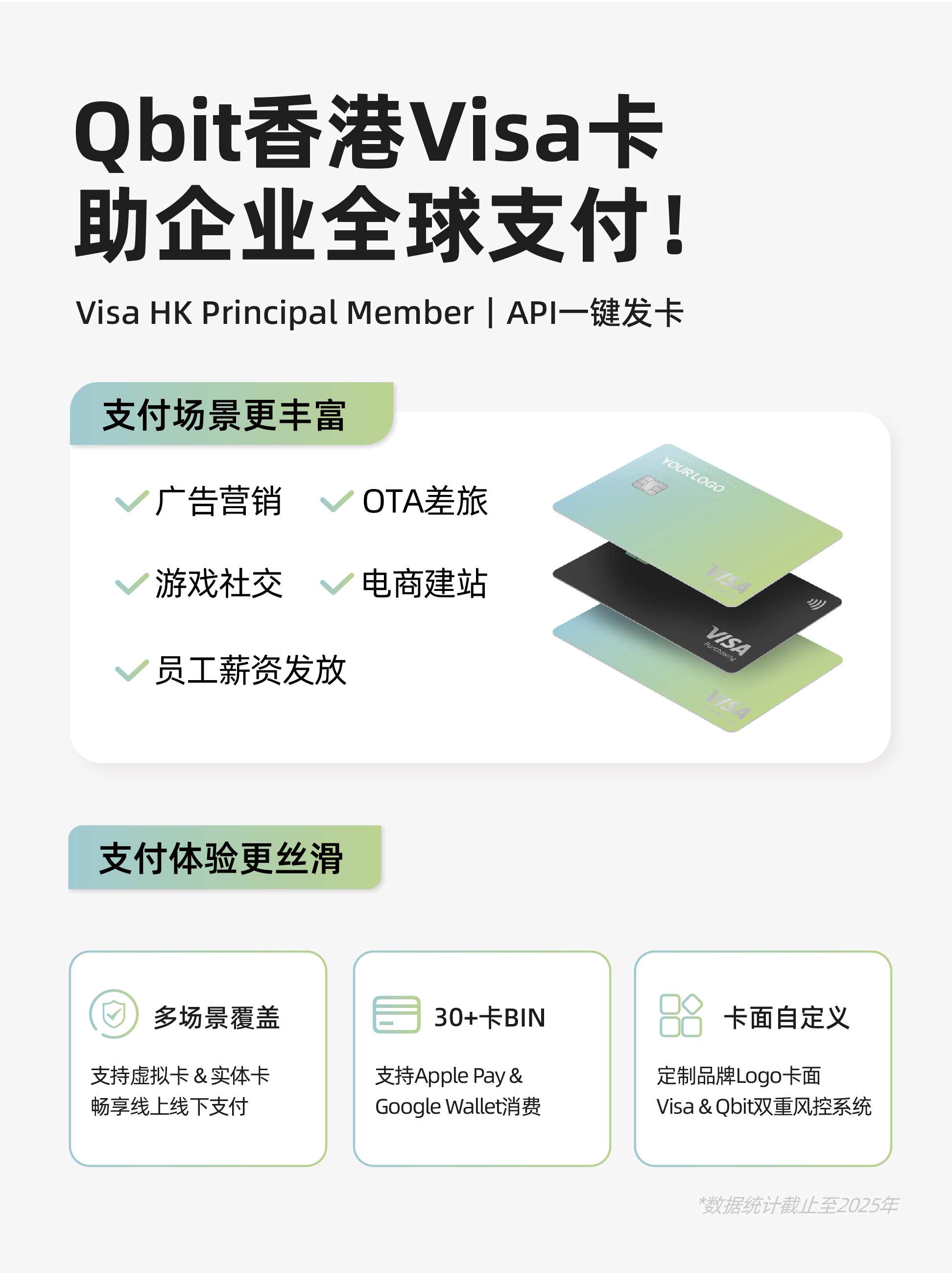 在本次展会上,Qbit重点展示了香港Visa卡和CaaS(Card-as-a-Service,卡即服务)的核心功能。作为Visa香港Principal Member(主会员机构),Qbit具备独立发行香港Visa卡的资质与能力,能够为企业提供合规、安全、灵活的发卡及支付解决方案。