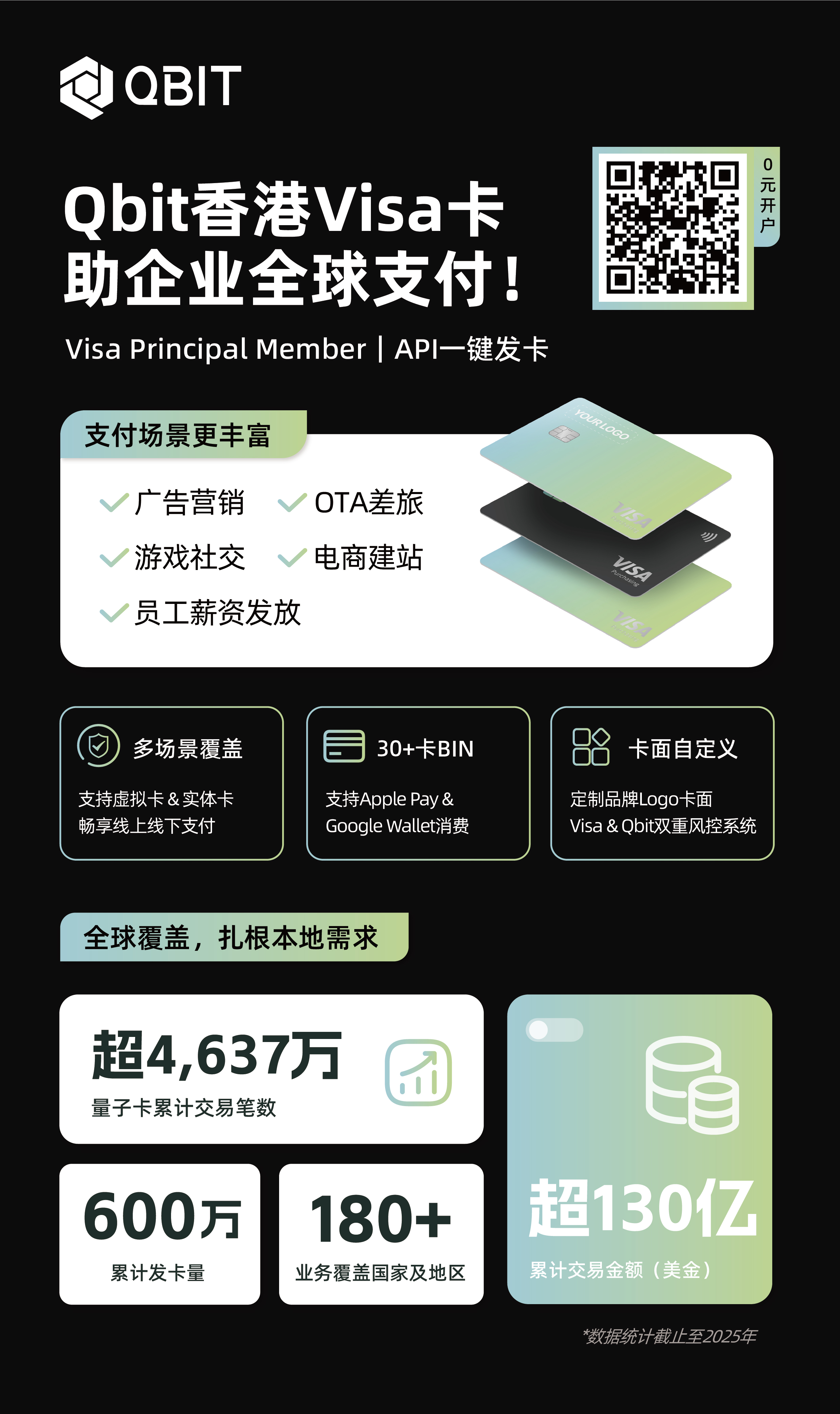 本次展会将汇聚全球行业领袖、创新者和企业家,预计吸引1800+企业高管、100+优质展商、15000+行业相关从业者参与,实现超3000万次全域曝光,为企业搭建高效展示与交流平台。Qbit期待在此次盛会上与更多行业伙伴面对面交流、分享洞察,共同探讨跨境支付、发卡业务与全球金融科技创新的前沿趋势和合作机遇。