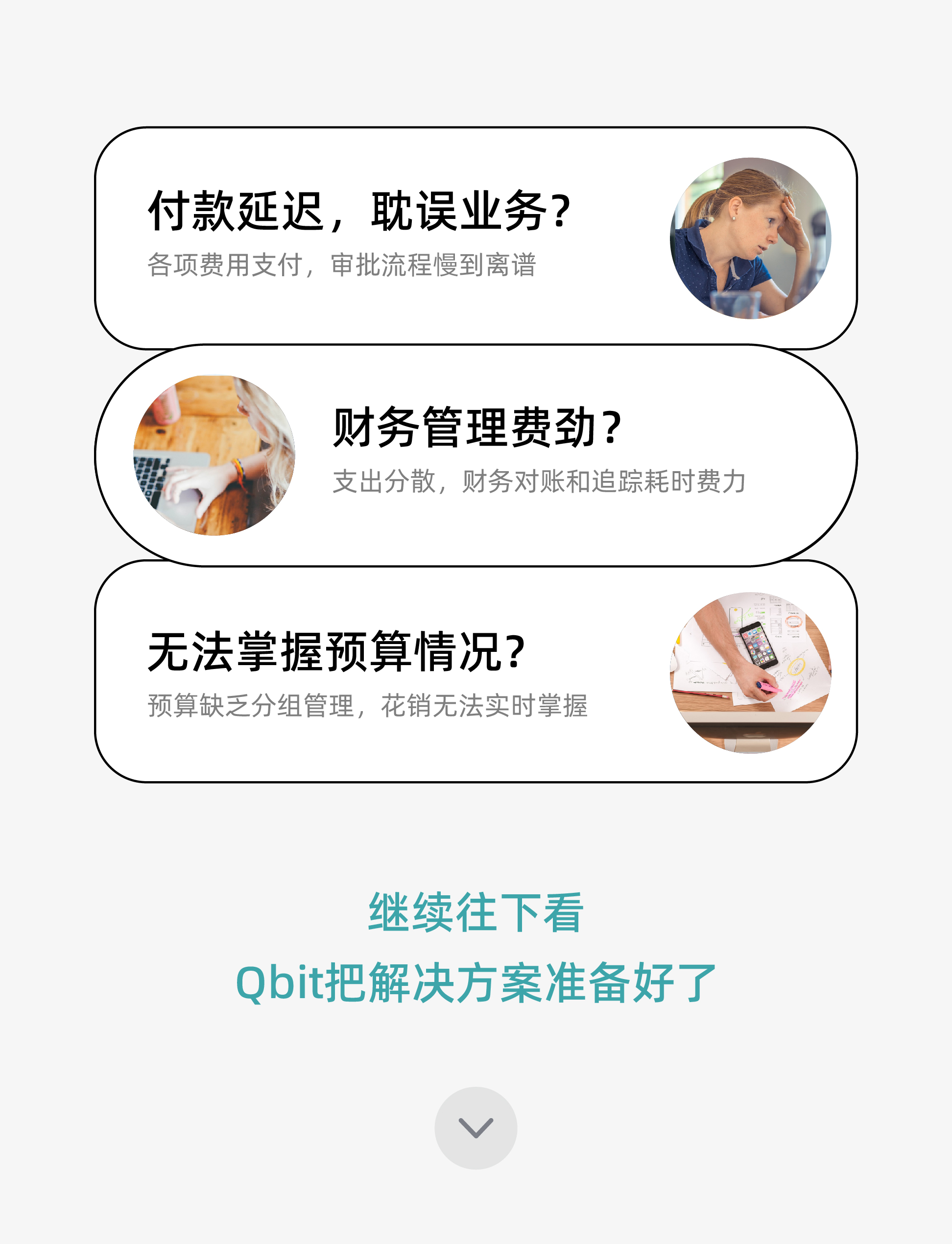 如果老板没办法实时了解员工实际支出,可能会出现一连串问题,例如预算失控、报销堆积、拖慢业务决策、无法第一时间识别风险,以及影响团队工作效率等。用Qbit量子卡,员工支出一目了然,管理更轻松。