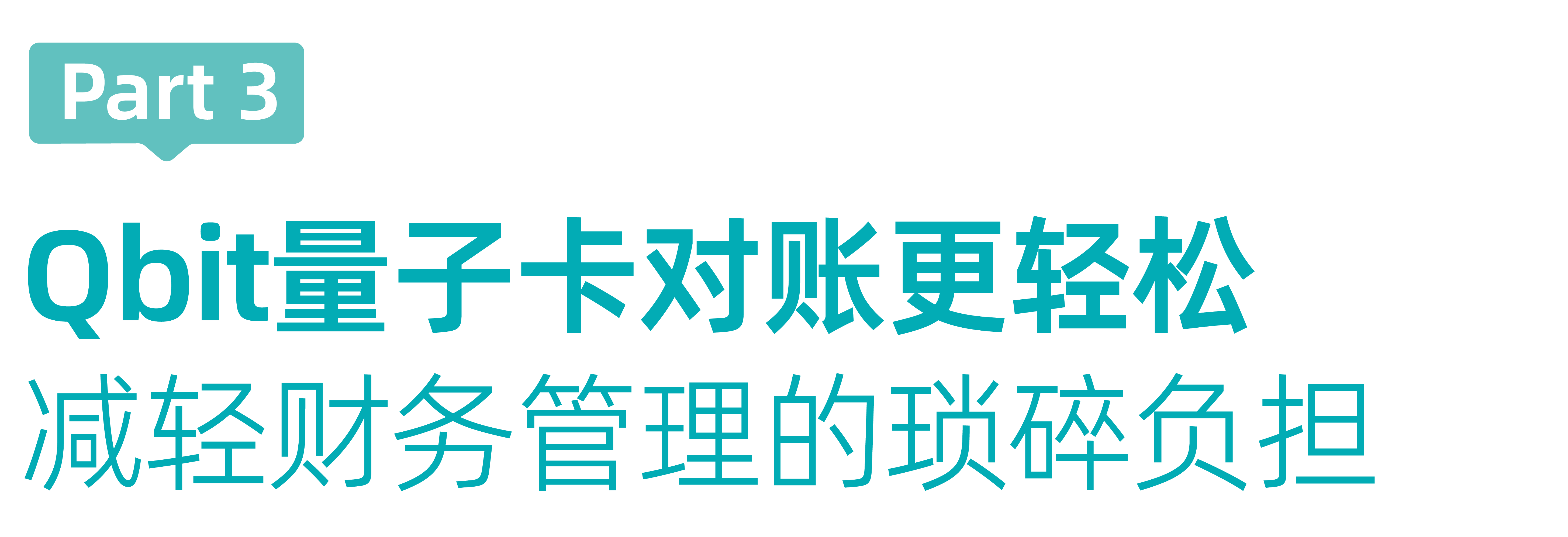 ● Qbit量子卡,每一笔支出实时可追踪,财务可以随时掌握资金流向。